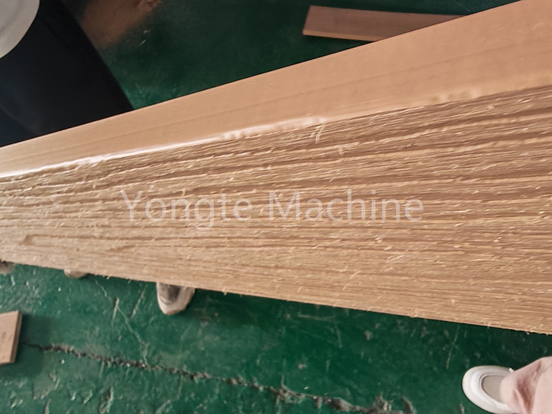 Спецыялізаваная шліфавальная і шчоткавая машына Yongte спецыяльна распрацавана для кампазітных вырабаў з драўніны і пластыка і выкарыстоўвае высакахуткаснае шліфаванне абразіўнымі стужкамі, ролікамі DuPont і ролікамі са сталёвага дроту. Гэта не толькі выдаляе недахопы паверхні, але і стварае шурпатую тэкстуру, падобную на драўнянае зерне, ухіляючы пластычны выгляд вырабаў з дрэва і пластыка. Такая апрацоўка паверхні заваявала папулярнасць сярод многіх кліентаў. Yongte можа абсталяваць розныя шліфавальныя і шурпатыя машыны ў адпаведнасці з канкрэтнымі дрэвапластыкавымі вырабамі і жаданымі ўзроўнямі шурпатасці, якія патрабуе кліент.