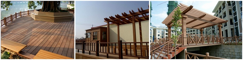 ПЭ-пластык + 10%-15% армаванага шкловалакном + 50-60% драўнянага парашка + суэкструзійны пласт супраць старэння + узмоцненая структура |