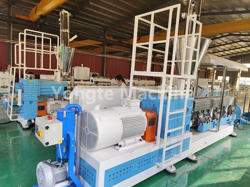 Машына для вырабу гранул Yongte WPC складаецца з сістэмы падачы, сістэмы паралельнай двухшнековой экструзіі, сістэмы гарачага гранулявання, сістэмы астуджэння выдзімання і сістэмы захоўвання матэрыялу.